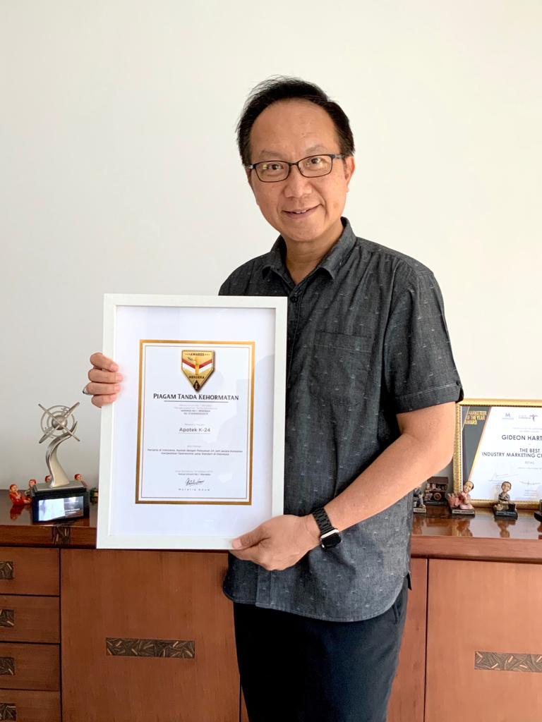 Apotek milik Gideon Hartono bernama K-24 berdiri. Namun pada mulanya atau tiga bulan pertama ia sepi pembeli. Walau demikian, orang mulai melihat Apotek K24 selalu buka selalu atau nonstop walaupun hari libur nasional. Atas kenyataan itu, banyak orang yang mulai melirik membeli obat di apotek milik Gideon. Apoteknya terus berkembang. Untuk memperluas pasar, ia membuka apotek K24 di seluruh kota di tanah air secara waralaba. Hingga berita ini ditulis ada 352 cabang Apotek K24 yang tersebar di pelosok Indonesia.